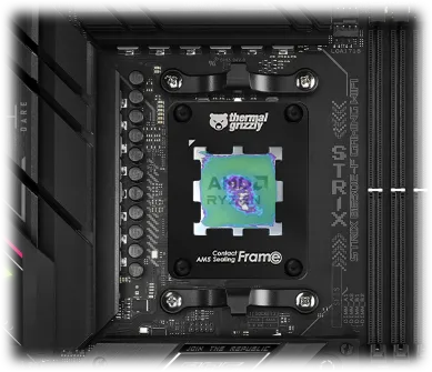 מסגרת מגע ואיטום AM5 מגיעה עם שיבוץ קצף סיליקון. זה יכול להיות ממוקם על ה-PCB של המעבד, בדומה ל-AMD Ryzen 7000 CPU Guard. בעת התקנת ה-AM5 Contact & Seal Frame, הרווח בין מפזר החום למסגרת האלומיניום נאטם על ידי קצף הסיליקון על ידי לחיצת הקצף על ה-PCB. זה מונע משחה תרמית או מתכת נוזלית להגיע לרכיבים הלא מוגנים של המעבד. שיבוץ הקצף הוא אופציונלי בשימוש עם משחות תרמיות, אך חובה בשימוש עם מתכת נוזלית.