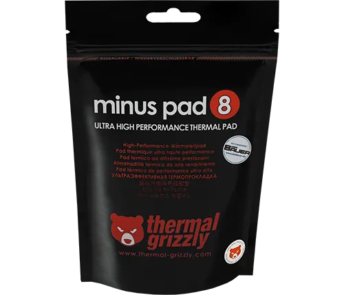הרפידות התרמיות עם ביצועים גבוהים מסדרת Thermal Grizzly Minus Pad מורכבות משטח פנים אלסטי וגמיש מאוד עם מוליכות תרמית גבוהה מאוד, המפצה אפילו על הפערים הקטנים ביותר בין הרכיבים. זמין במגוון גדלים ועוביים שונים.