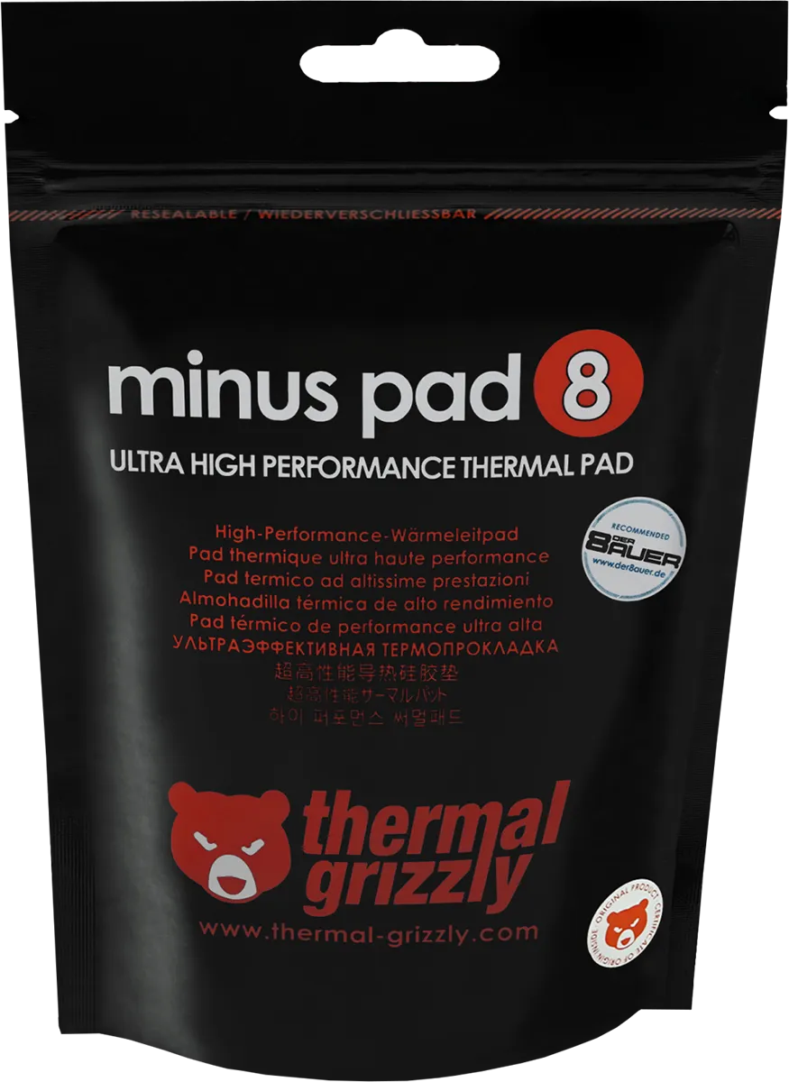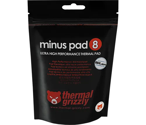 הרפידות התרמיות עם ביצועים גבוהים מסדרת Thermal Grizzly Minus Pad מורכבות משטח פנים אלסטי וגמיש מאוד עם מוליכות תרמית גבוהה מאוד, המפצה אפילו על הפערים הקטנים ביותר בין הרכיבים. זמין במגוון גדלים ועוביים שונים.