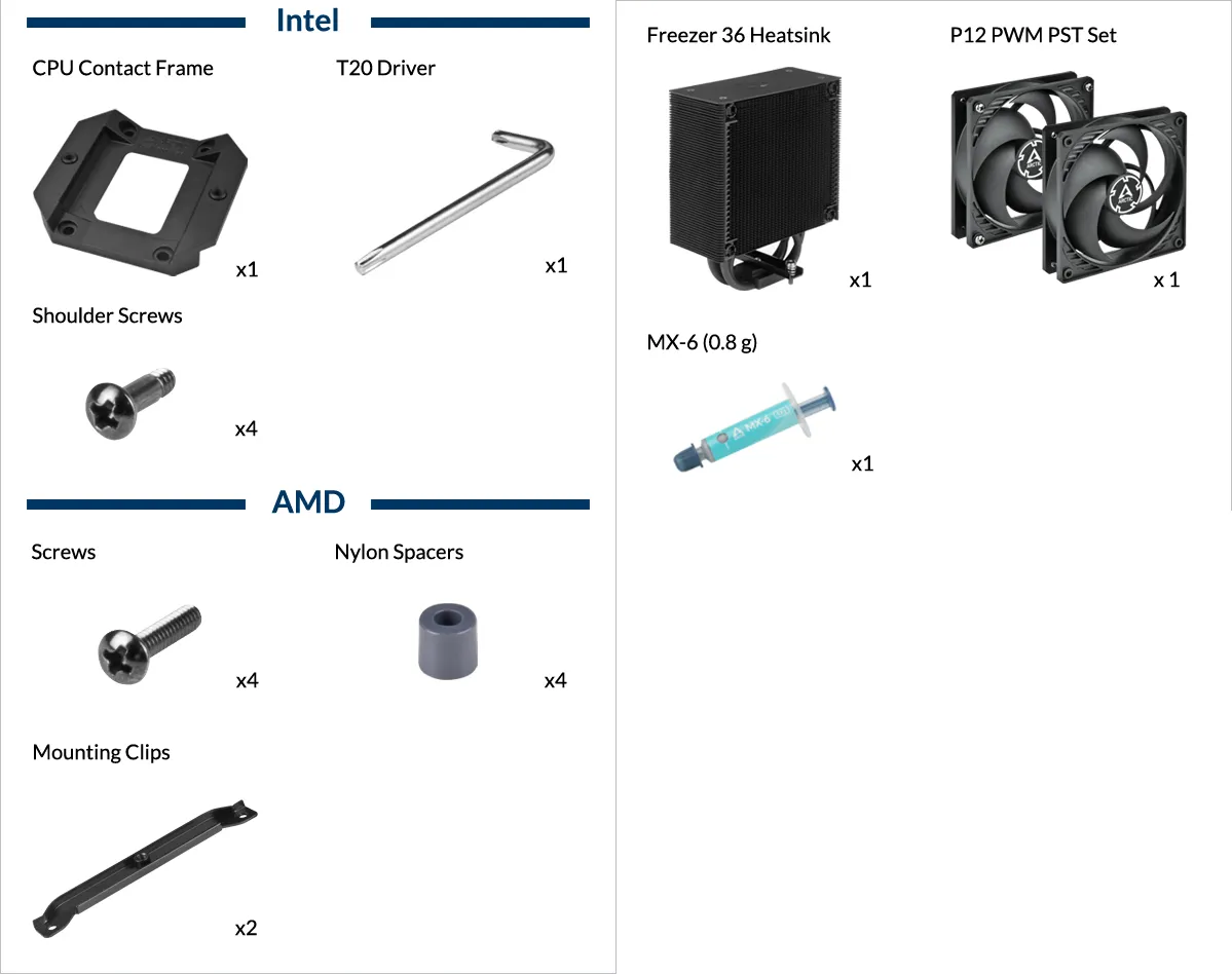 אינטל בדקה ואישרה את ה-Freezer 36 עבור מעבדי i9-13900K/KF, i9-14900K/KF ו-i9-13900KS בקטגוריות Enthusiast ו-Desktop. בבדיקות אלו, אינטל בחנה הן את ההרכבה עם מסגרת מגע והן את ביצועי הקירור.