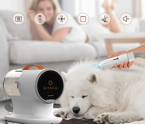 שואב לחיות Airrobo PG100 עם ערכת טיפוח לניקוי פרווה כולל קוצץ שיער