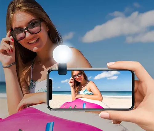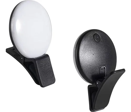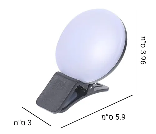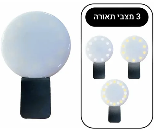 אביזר צילום קומפקטי המתחבר בקליפס לסמארטפון עם נורות LED בעלות 3 מצבי תאורה המאפשר תאורה לצילומי סלפי