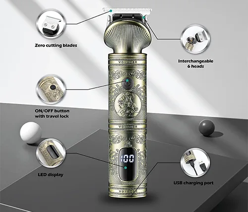 מכונת תספורת חשמלית נטענת מקצועית VGR V-106 לשיער ולעיצוב הזקן הכולל צג דיגיטלי מואר