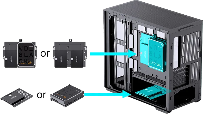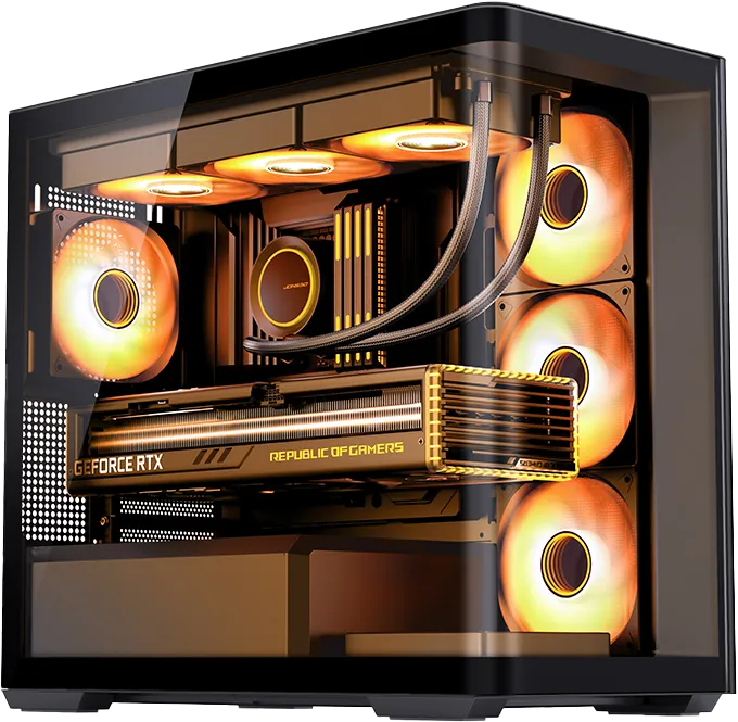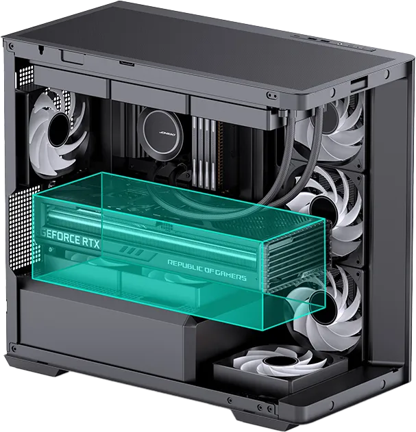 מארז מחשב Jonsbo D300 Black כולל חלון קדמי וצד, עם מקום לעד 10 מאווררים של 12 ס"מ, בעל חלל גדול עם מקום לכרטיסי מסך גדולים ולקירור מעבד מסיבי, תומך קירור נוזלי עד 360 מ"מ
