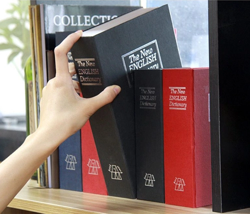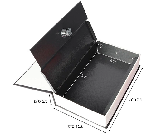 מתאימה לאחסון כסף מזומן ודברי ערך, עם שני מפתחות. ממש נראית כמו ספר אמיתי, כמו כן, לבית ולמשרד, וניתן להסתיר בין שאר הספרים על המדף.