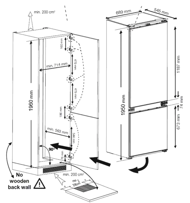 מקרר אינטגרלי מקפיא תחתון 405 ליטר בקו Beko BCNE400 – משלוח חינם