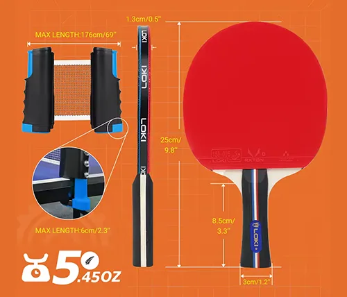 ערכת טניס שולחן הכולל זוג מחבטים + 3 כדורים + רשת ותיק נשיאה מבית Loki Sports