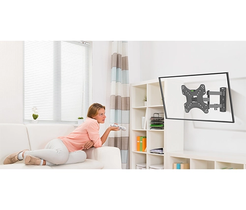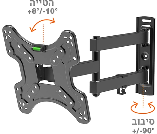 זרוע מפרקית מתכווננת לטלוויזיה ולמסכי מחשב בגודל 17-42 אינץ', Ivory דגם D110, עם כושר נשיאה של עד 25 ק"ג. מאפשרת הטיה של 8°+ עד 10°-, סיבוב של 90°+ ~90°- וטווח קירוב והרחקה מהקיר בין 55-415 מ"מ. הזרוע תואמת לתקן VESA 200x200 וכוללת ניהול כבלים מובנה