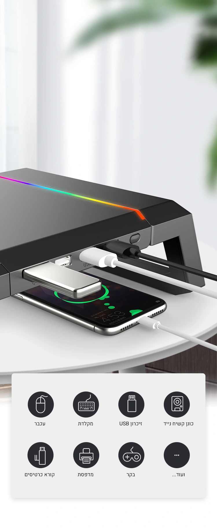 מעמד הגבהה למסך מחשב עד 27 אינץ' - תאורת RGB - לבן - Ivory Peripherals