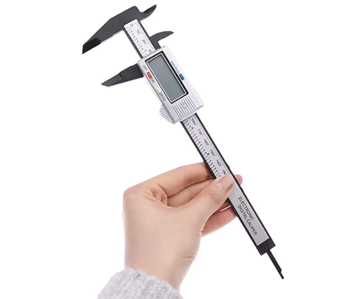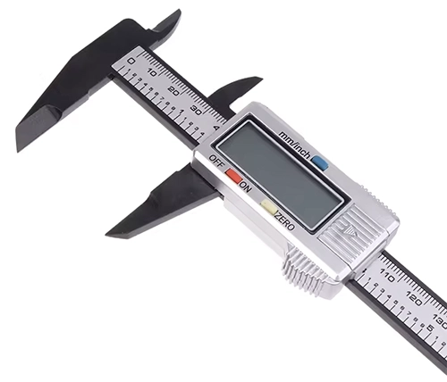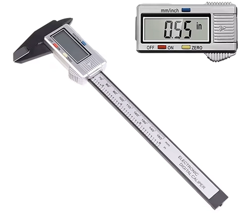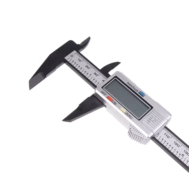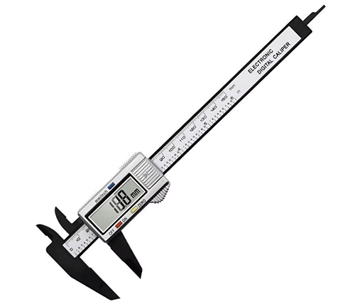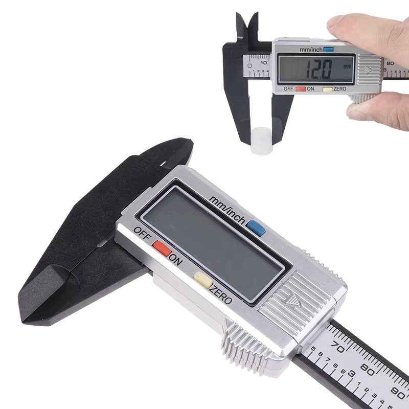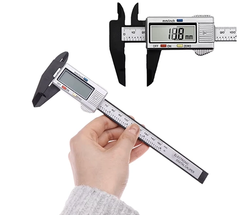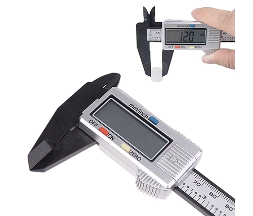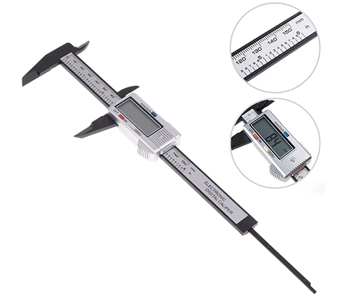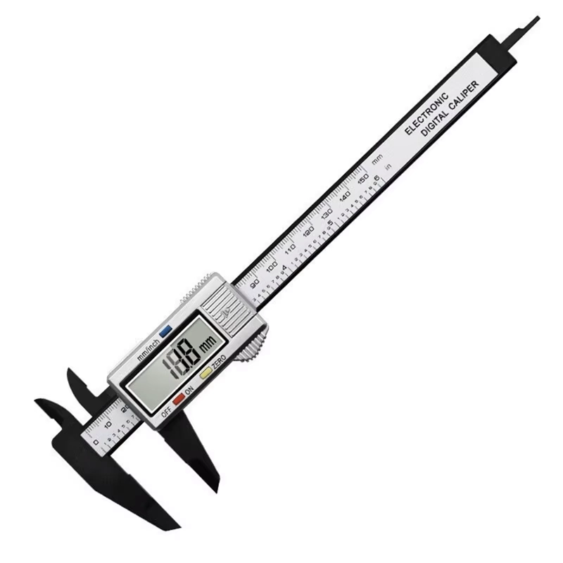 קליפר דיגיטלי עשוי מסיבי פחמן חזקים במיוחד, למדידת קוטר פנימי, קוטר חיצוני, מדידת עומק ומדידת שלבים, מידה מינימלית לקריאה 0.1 מ''מ, פועל עם סוללת כפתור LR44